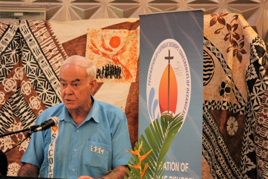 Columban missionary Fr Frank Hoare spoke to the Federation of Conferences of Catholic Bishops of Oceania (FCBCO) earlier this week. Synodality and formation for mission were two of the three major themes of the bishops’ assembly along with the effects of a changing climate on the oceans. Here is the text of Fr Hoare’s address:
