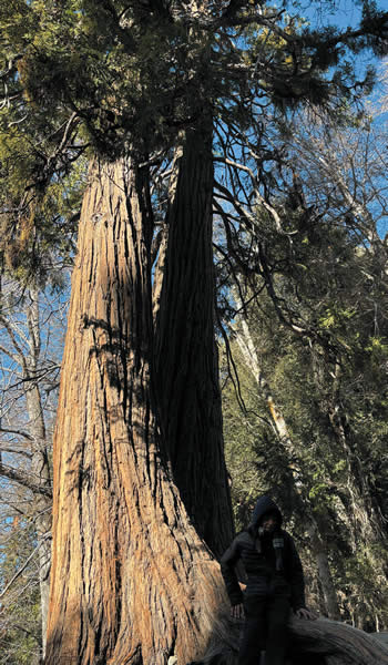 We walked about three-quarters of a mile upstream to a place where we could cross the creek and take a picture at the trailhead going to the top (a 19-mile round trip). The stream bed is about 100 yards wide, full of boulders and rough sand. When it rains the water rushes down in a torrent. But now there was no water at all. Where was it? Here, it flows under the rocks and sand until it comes up again. Fascinating! Nature is strange. We took some pictures and walked back down to the picnic area for hot dogs and hot chocolate. On the way back some worked together to build a stone pile. Good practice in working together. Some listened to me and hugged some of the big trees along the way. If you’re sensitive you can feel the energy in a tree. What an idea!